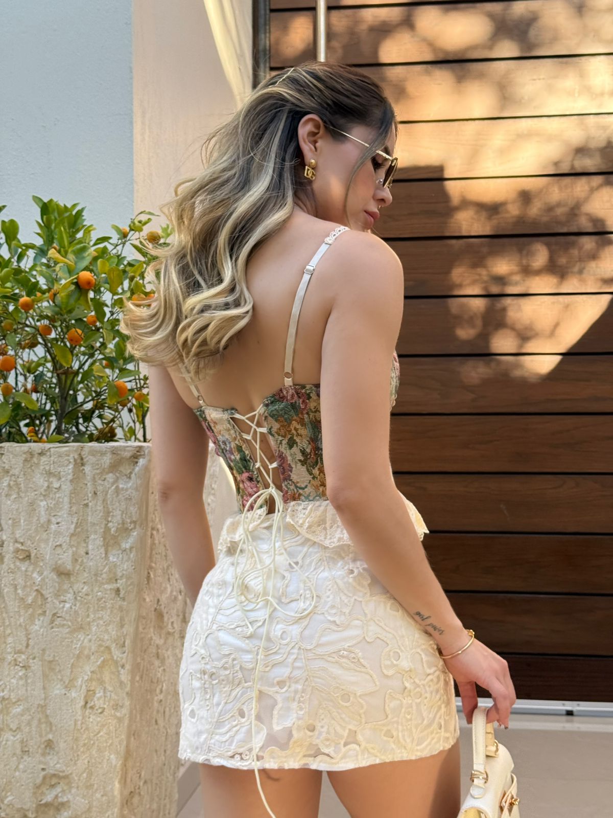 CORSET ESTAMPADO Y ENCAJE
