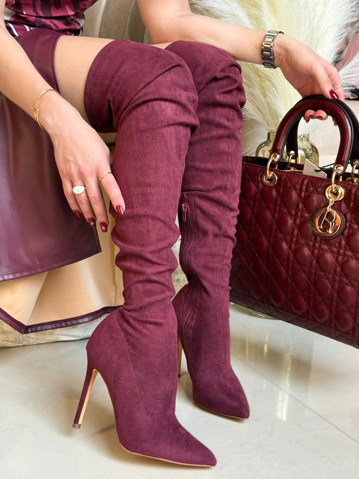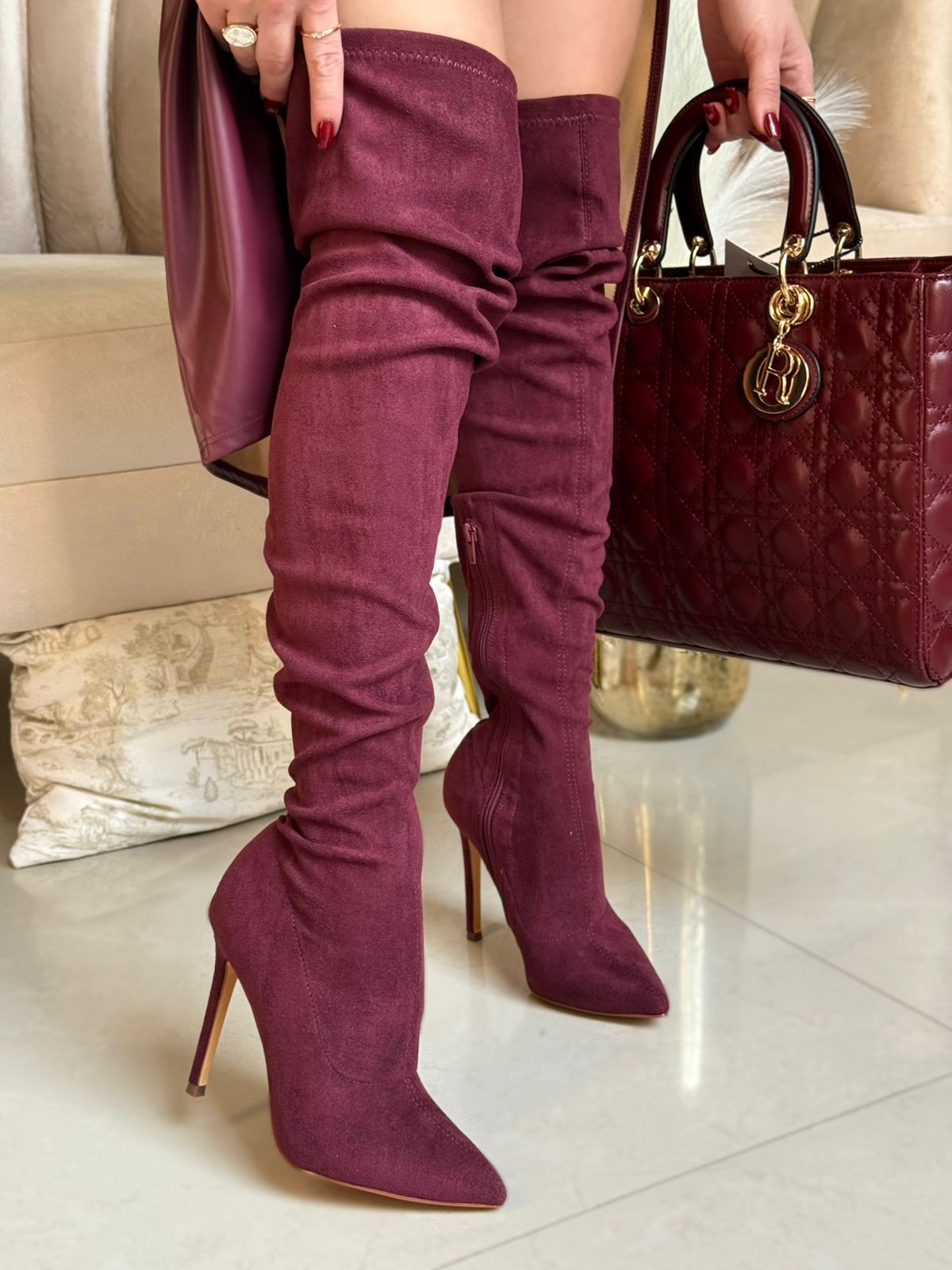 BOTA TINTA GAMUZA DE TACON DELGADO