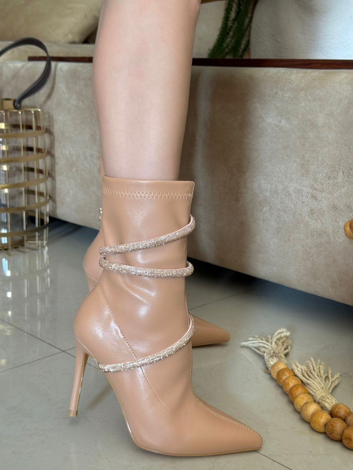 BOTIN BEIGE DE TACON DELGADO DETALLE EN PIEDRAS