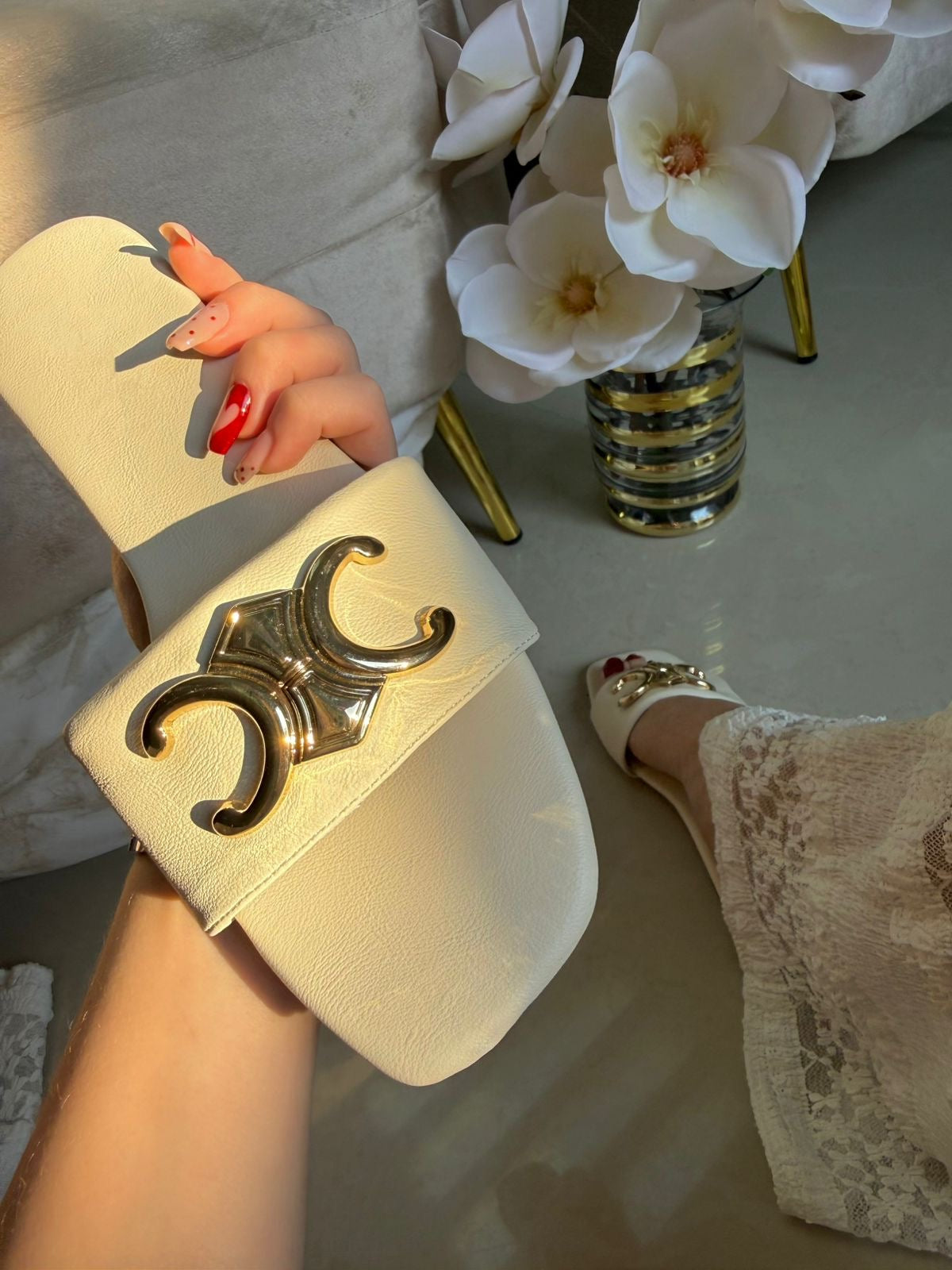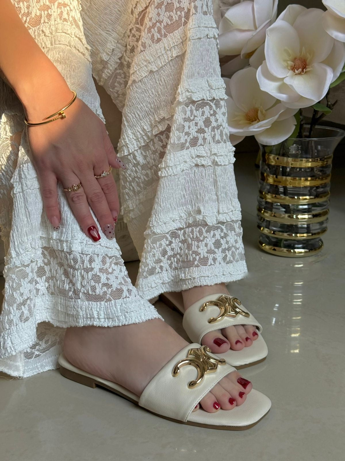 SANDALIA BEIGE DE PISO DETALLE EN HEBILLA