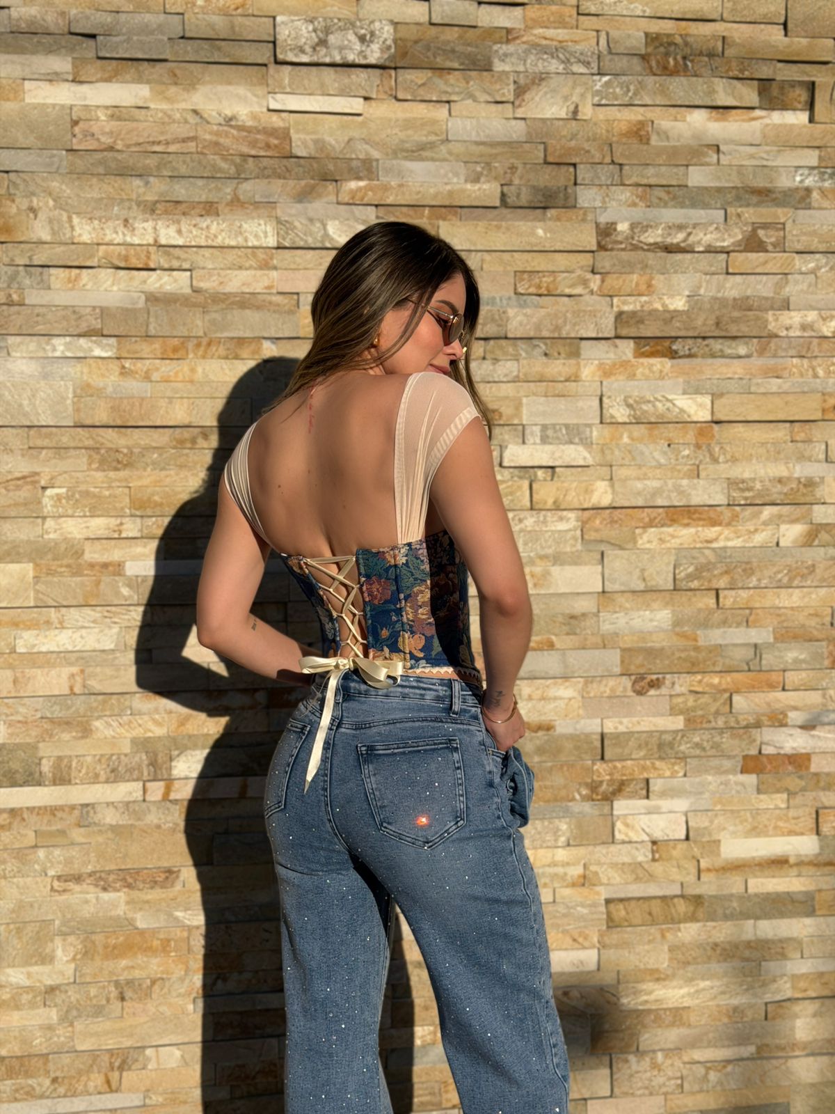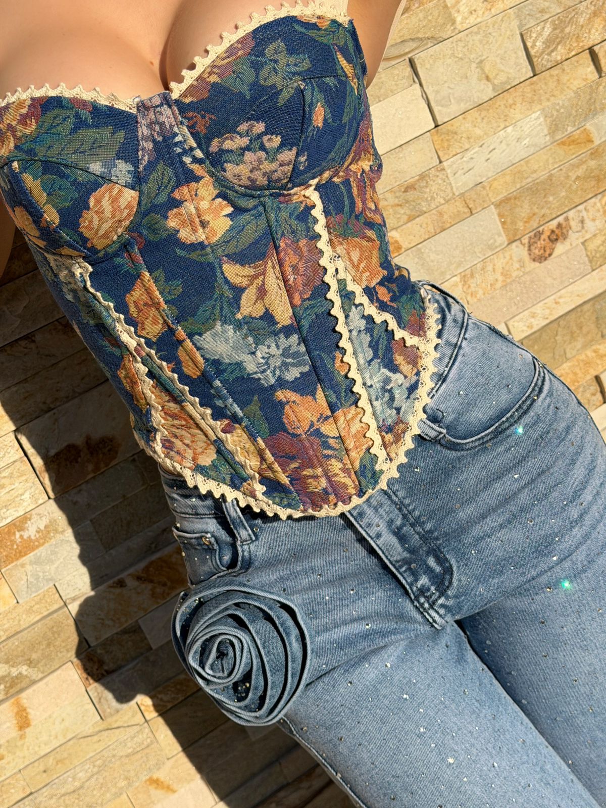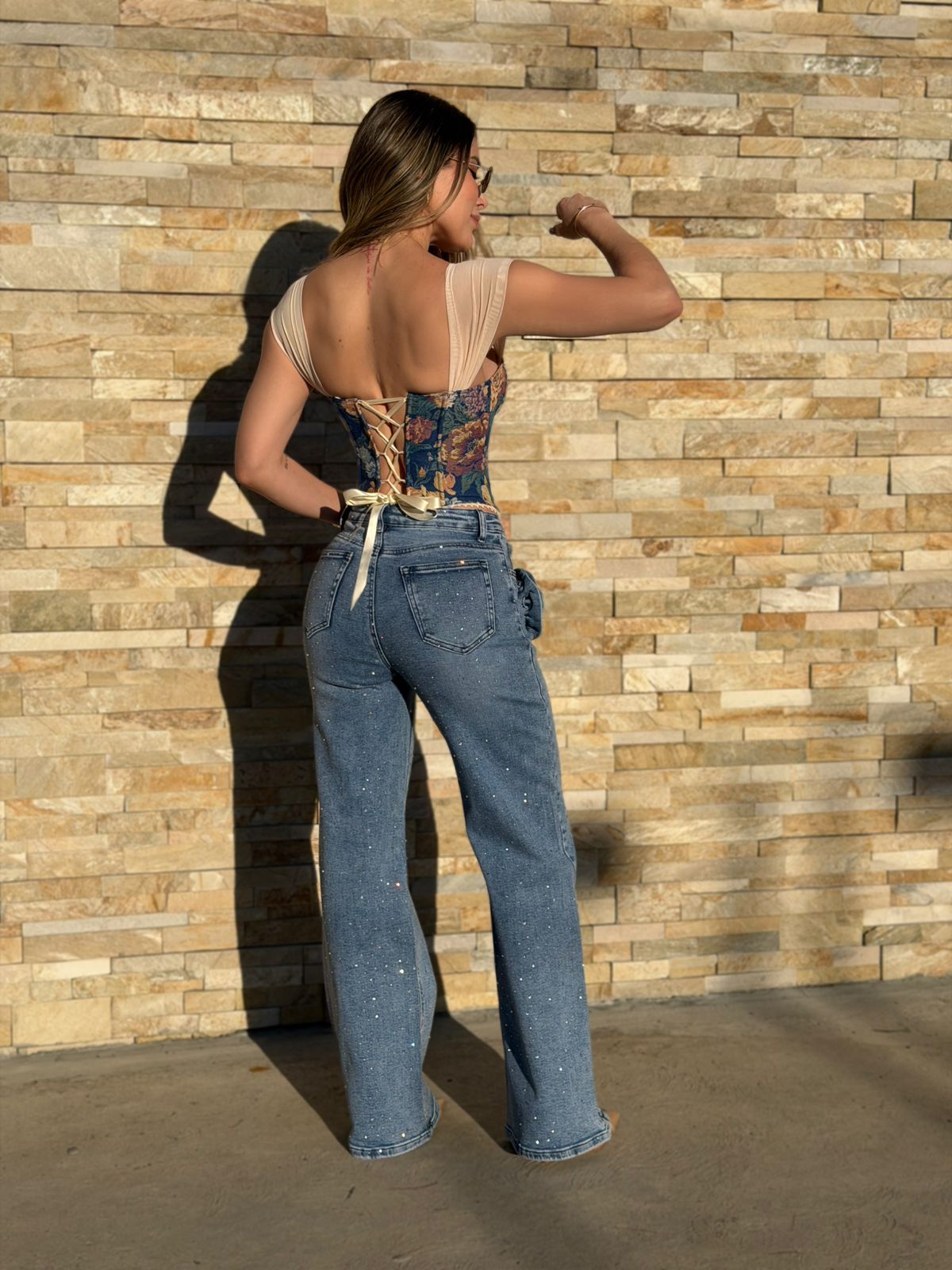 PANTALON CRISTALES Y FLOR