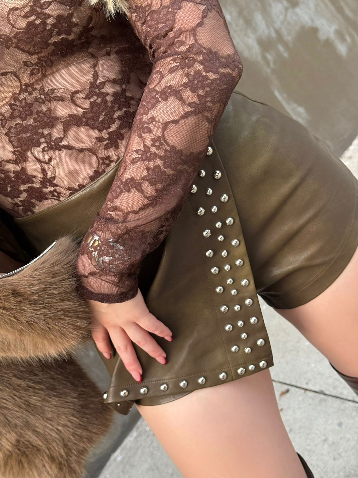 FALDA CAFE VINIPIEL CORTA DETALLE ESTOPEROLES