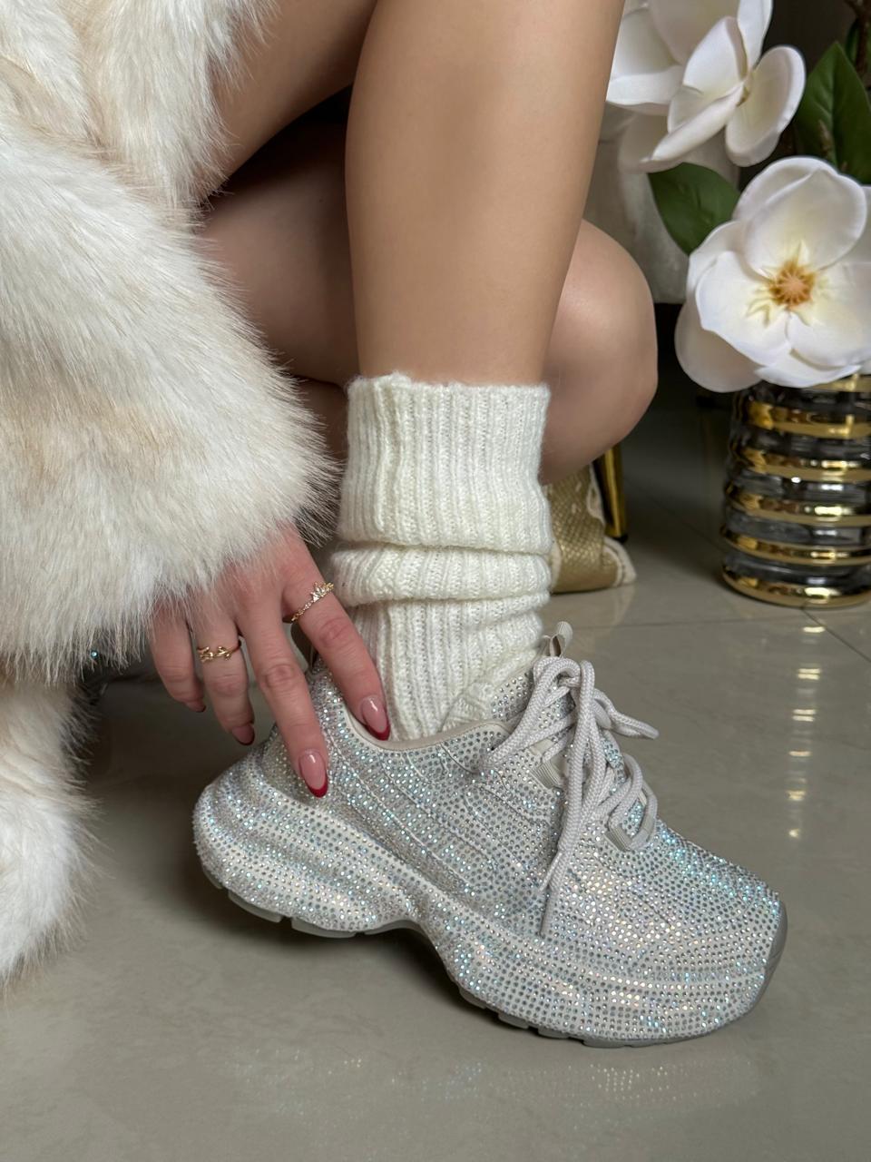 TENIS PLATEADO PLATAFORMA CUBIERTO CRISTALES
