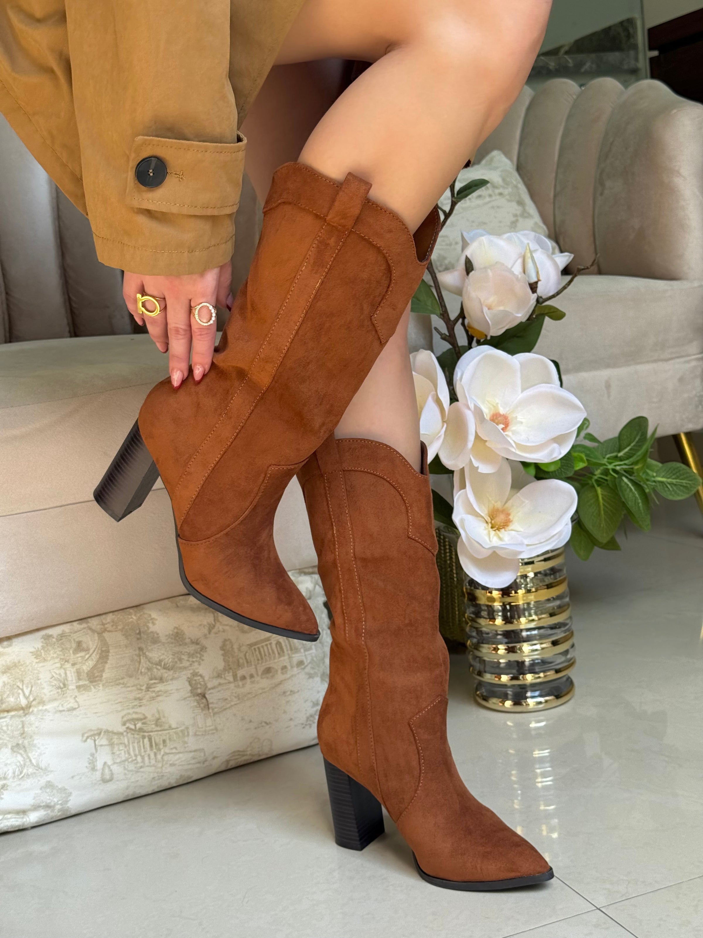 BOTA CAMEL DE GAMUZA DE TACON REDONDO